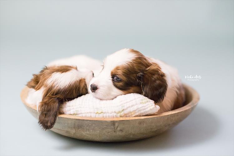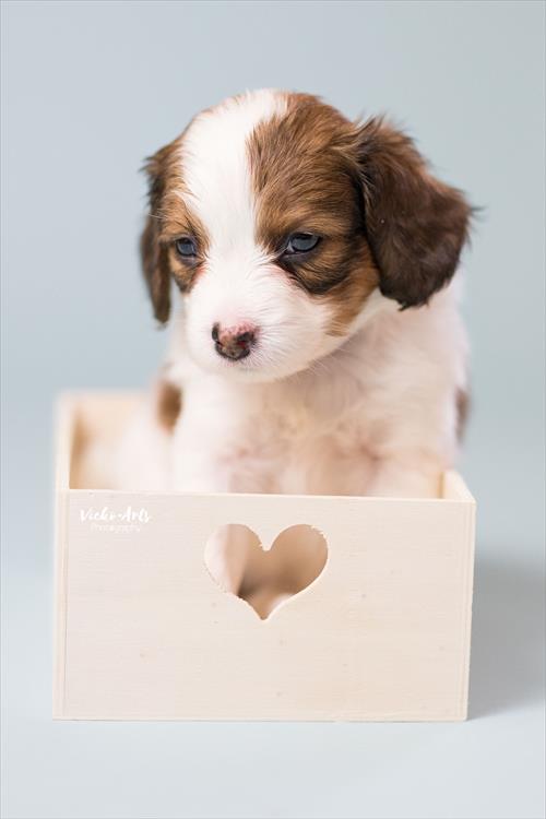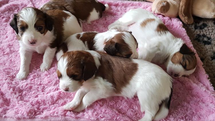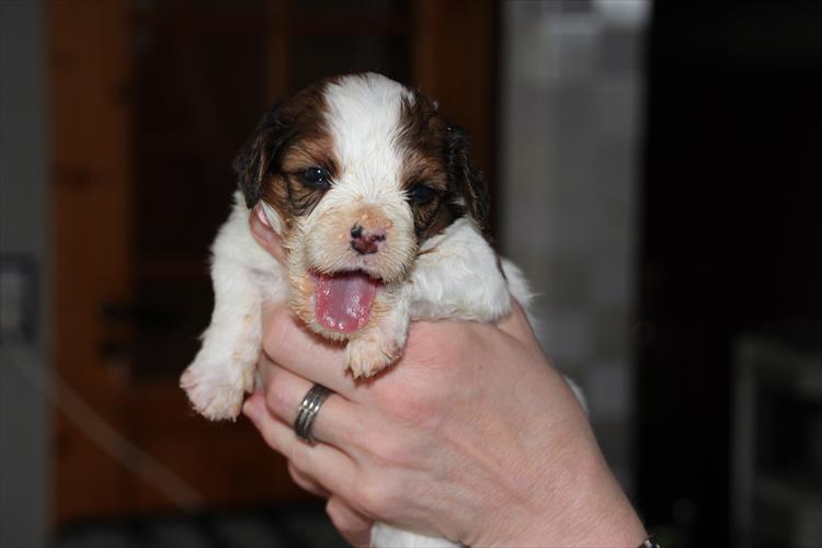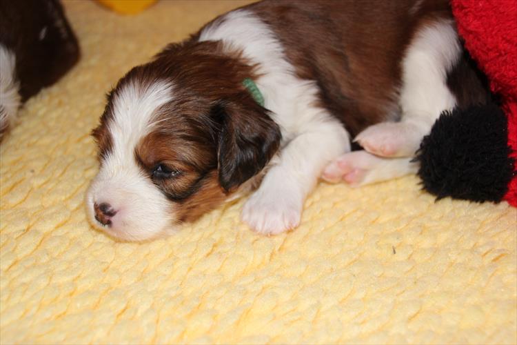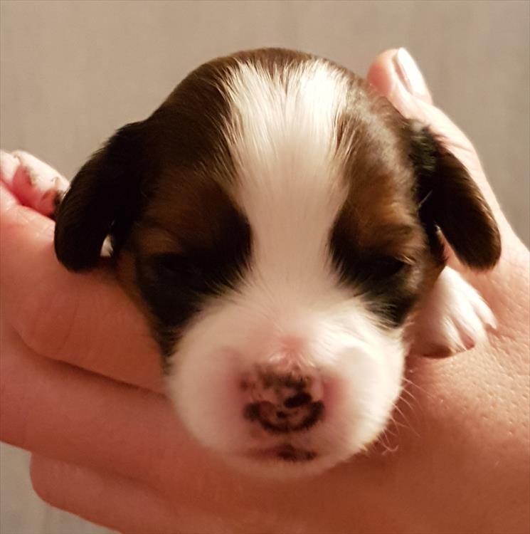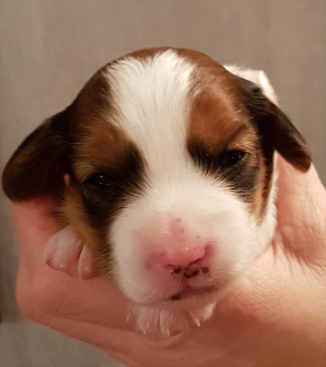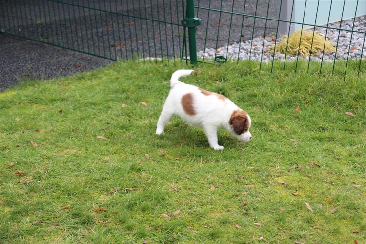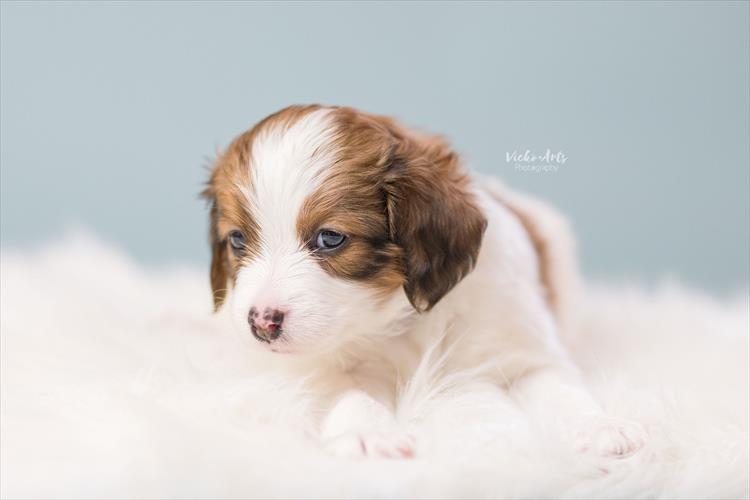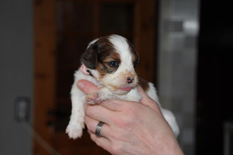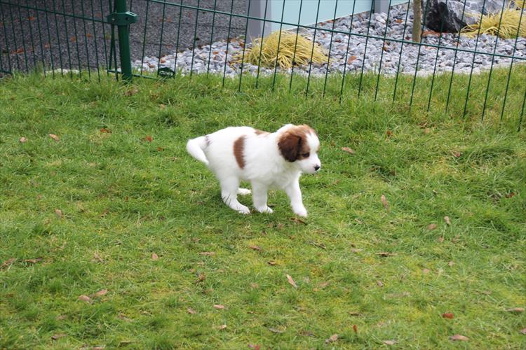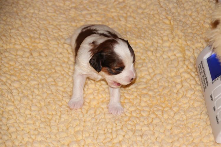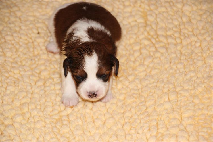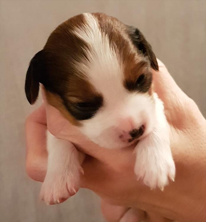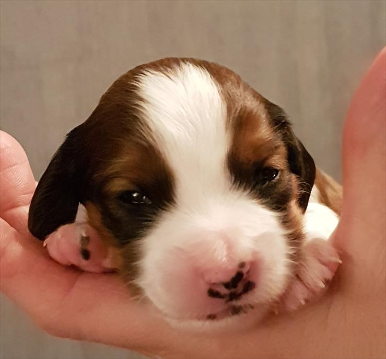 Unsere Zwerge kommen jetzt in die Übergangsphase.(3. Woche). Sie dauert vom Öffnen der Augen 10. bis 14. Lebenstag bis zum vollständigen Öffnen des Gehörganges 13 bis 15. Lebenstag. Das Öffnen der Augen erfolgt vom inneren Augenwinkel. Die Augen sind zunächst trüb. Zuerst werden Bewegungen als Schatten wahrgenommen. Danach verbessert sich das Sehen täglich. Die echte Sehfähigkeit der Augen ist erst um den 17. Lebenstag vorhanden. Das gleiche gilt für das Hören. Die Welpen beginnen jetzt ohne Mutters Hilfe ihre "Geschäfte" zu verrichten. Dabei kann man schon mal umfallen. Die Stimulierung von Harn- und Kotabsatz durch die Mutter geht bis zum 16. Lebenstag. Willkürliche Kontrolle des Harnabsatzes ab dem 21. Lebenstag. Muskelzuckungen während des Schlafes ist bis zum 28. Lebenstag zu beobachten. Die Welpen geben jetzt auch Laute von sich wie ein Quieken, leises Knurren und Bellen. Hauptsächlich sind diese Geräusche im Schlaf zu entdecken. In dieser Phase fällt die Entwicklung einer ersten Form der Stubenreinheit auf. Die Welpen machen regelrecht Terror und versuchen die Wurfkiste zu verlassen. Setzt man sie neben die Kiste, lösen sie sich meist sehr schnell und sind danach in der Kiste wieder ruhig und zufrieden. Es zeigen sich erste soziale Verhaltensweisen wie Schwanzwedeln und Knurren den Geschwistern gegenüber.