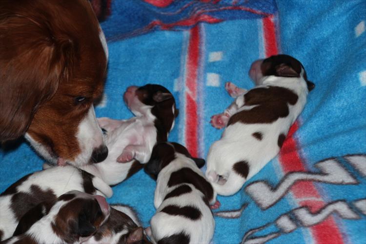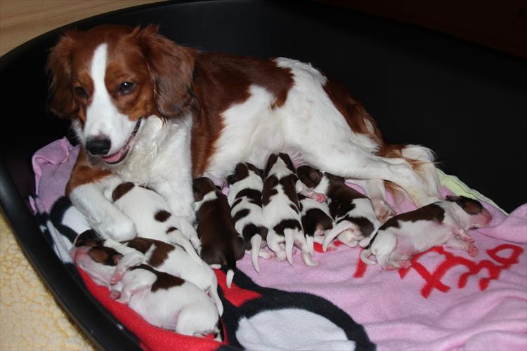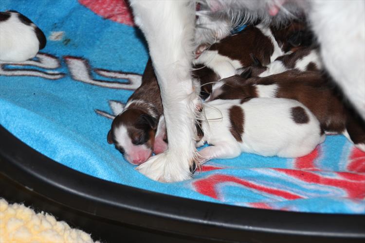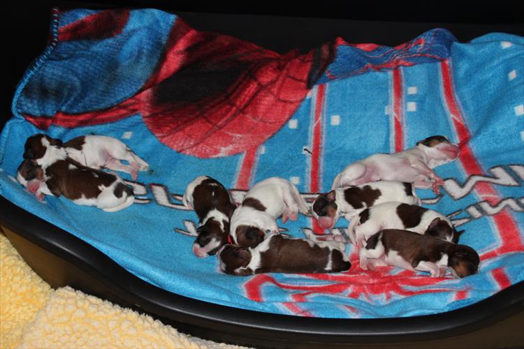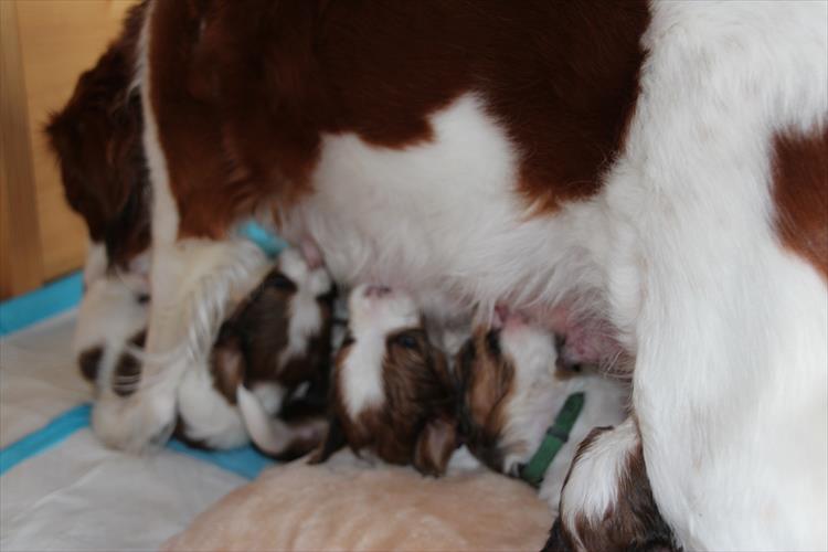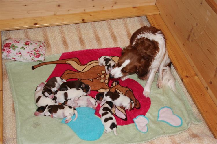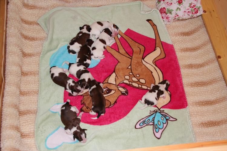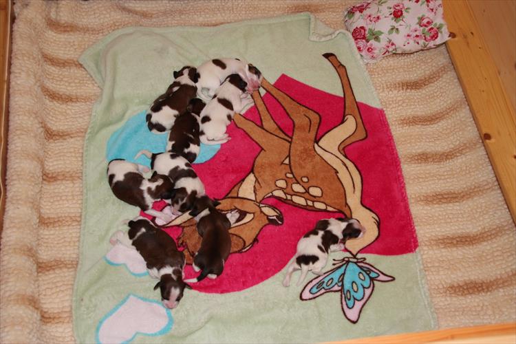 Unser Nachwuchs ist jetzt 4 Tage alt. Der Tierarzt ist sehr zufrieden mit den 9 Zwergen. Sie haben Hunger, Hunger ...