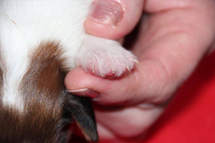 Die Krallen müssen gekürzt werden, weil die Welpen damit das Gesäuge verletzen können.