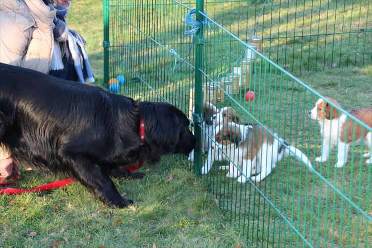 Emil begrüßt seine Kinder (mit Collin und Frauchen)