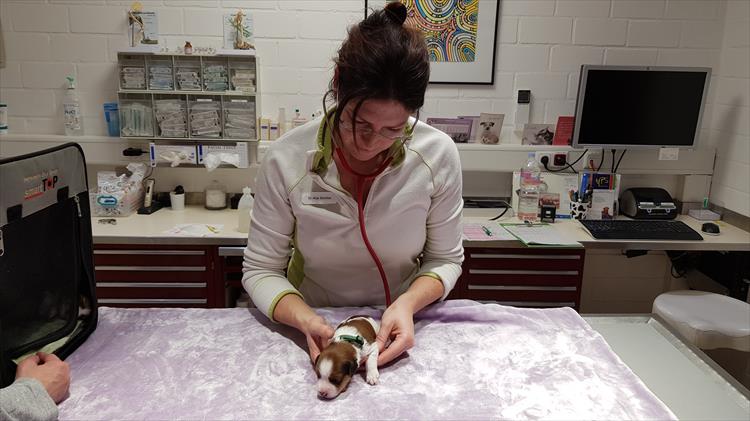 Kurz nach dem Kaiserschnitt - noch in der Tierarztpraxis