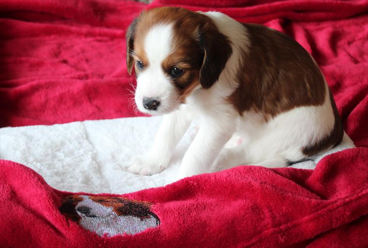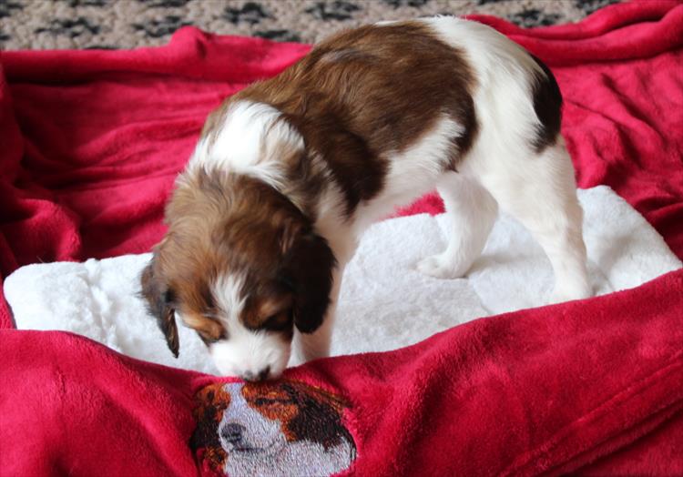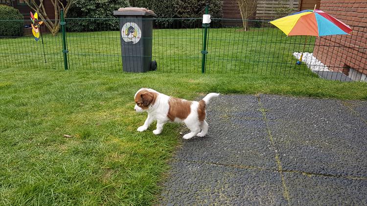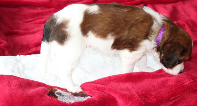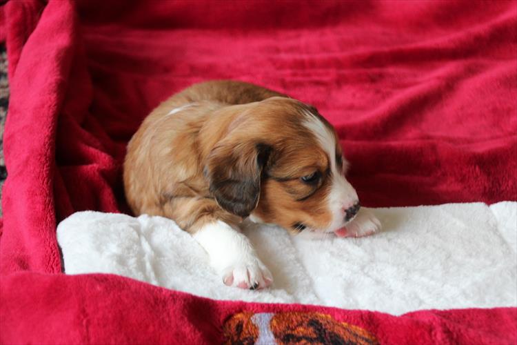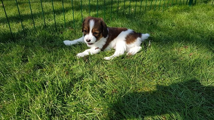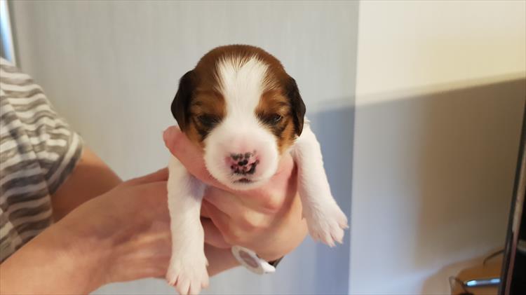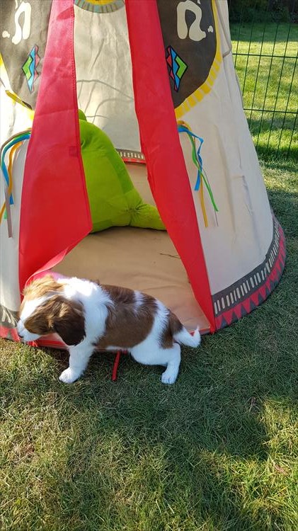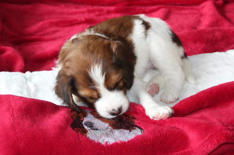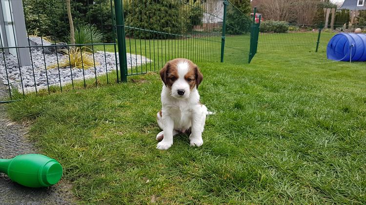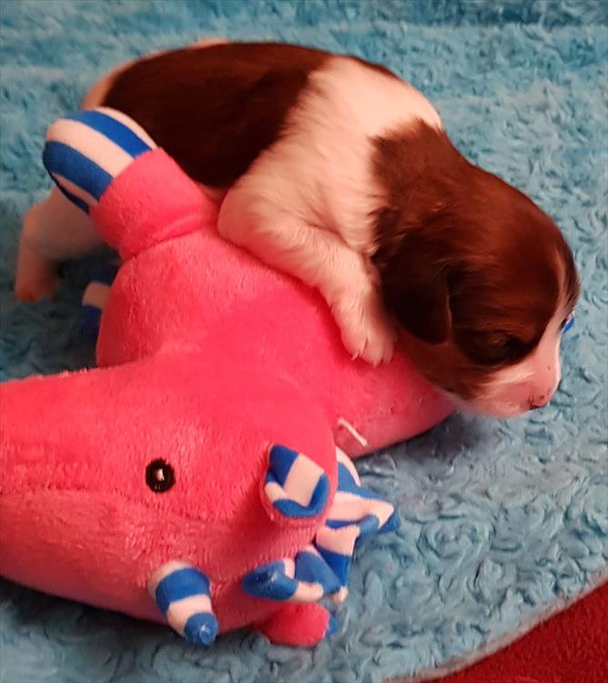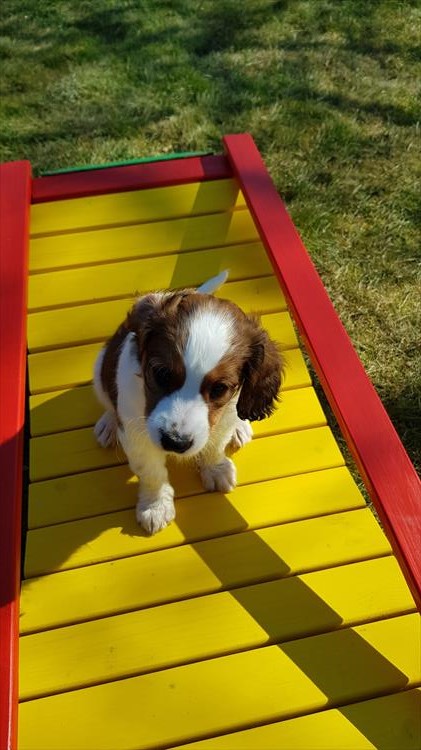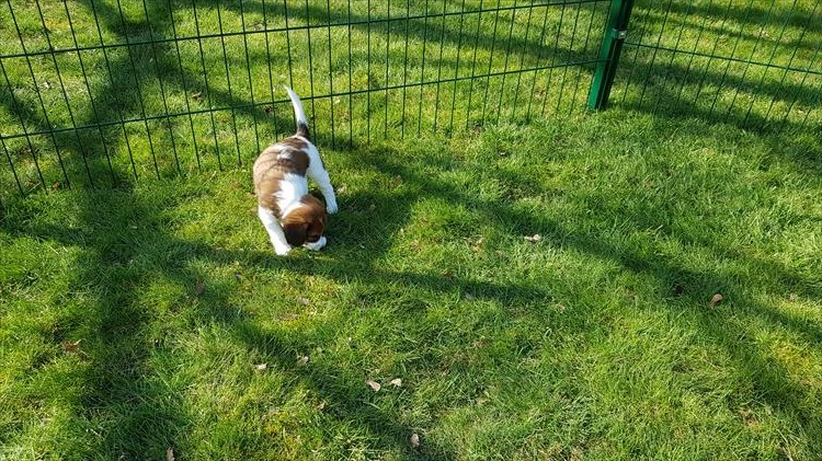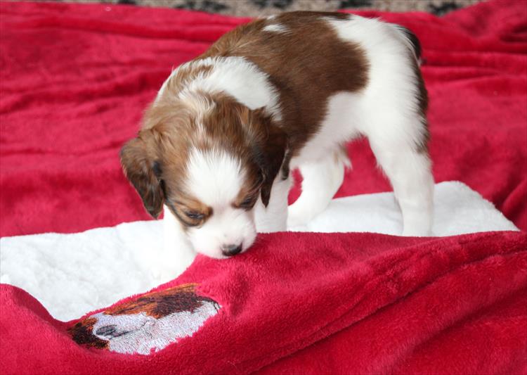 Unsere Zwerge kommen jetzt in die Übergangsphase.(3. Woche). Sie dauert vom Öffnen der Augen 10. bis 14. Lebenstag bis zum vollständigen Öffnen des Gehörganges 13 bis 15. Lebenstag. Das Öffnen der Augen erfolgt vom inneren Augenwinkel. Die Augen sind zunächst trüb. Zuerst werden Bewegungen als Schatten wahrgenommen. Danach verbessert sich das Sehen täglich. Die echte Sehfähigkeit der Augen ist erst um den 17. Lebenstag vorhanden. Das gleiche gilt für das Hören. Die Welpen beginnen jetzt ohne Mutters Hilfe ihre "Geschäfte" zu verrichten. Dabei kann man schon mal umfallen. Die Stimulierung von Harn- und Kotabsatz durch die Mutter geht bis zum 16. Lebenstag. Willkürliche Kontrolle des Harnabsatzes ab dem 21. Lebenstag. Muskelzuckungen während des Schlafes ist bis zum 28. Lebenstag zu beobachten. Die Welpen geben jetzt auch Laute von sich wie ein Quieken, leises Knurren und Bellen. Hauptsächlich sind diese Geräusche im Schlaf zu entdecken. In dieser Phase fällt die Entwicklung einer ersten Form der Stubenreinheit auf. Die Welpen machen regelrecht Terror und versuchen die Wurfkiste zu verlassen. Setzt man sie neben die Kiste, lösen sie sich meist sehr schnell und sind danach in der Kiste wieder ruhig und zufrieden. Es zeigen sich erste soziale Verhaltensweisen wie Schwanzwedeln und Knurren den Geschwistern gegenüber.