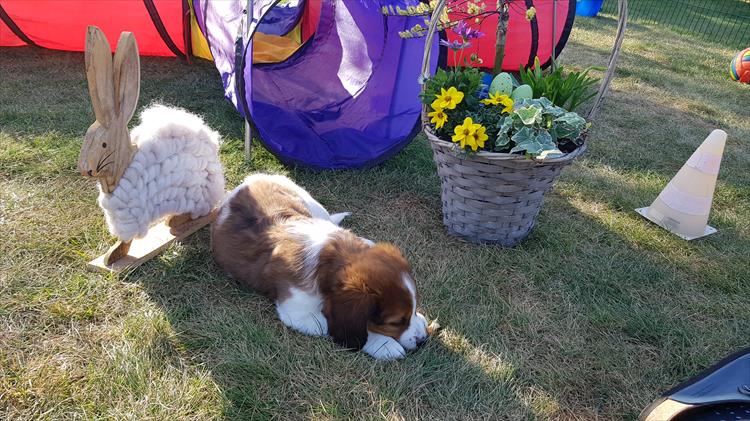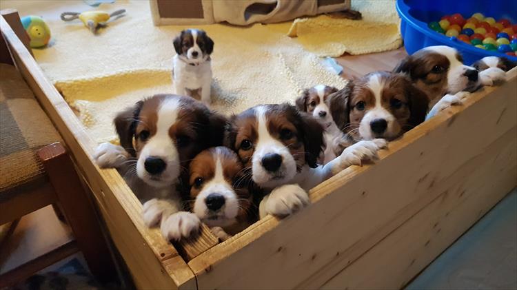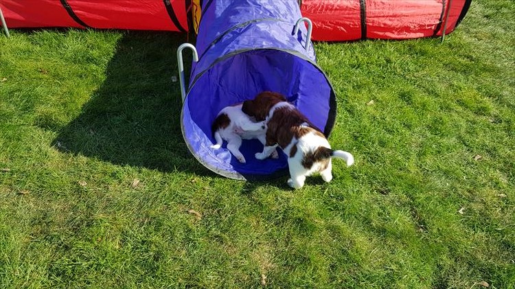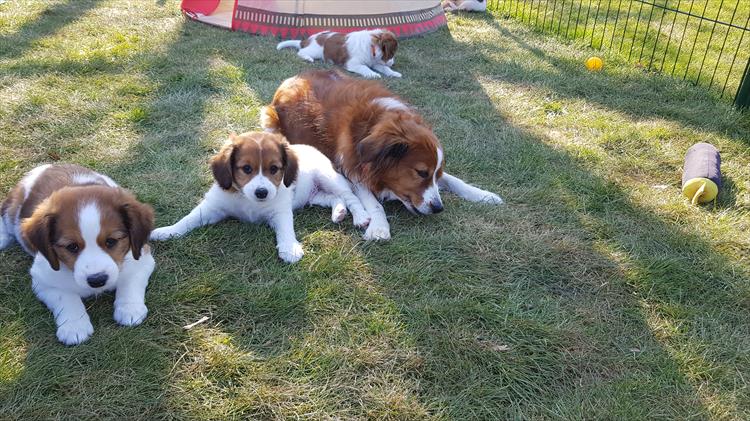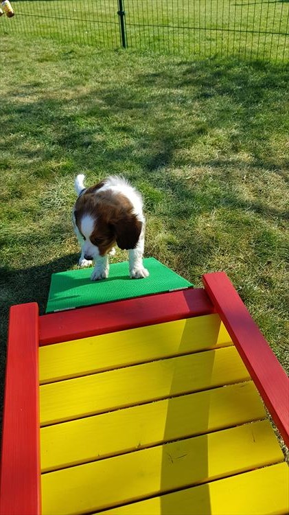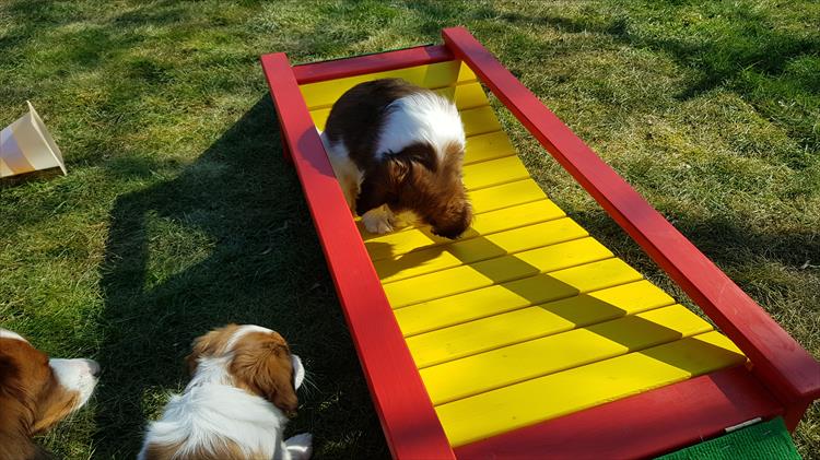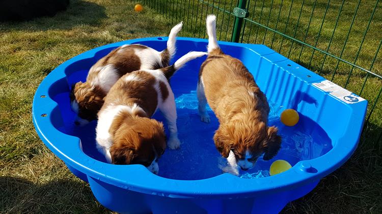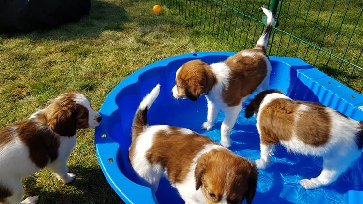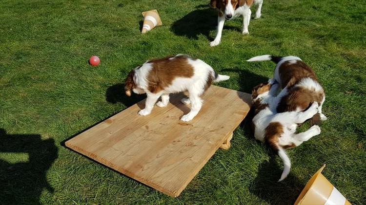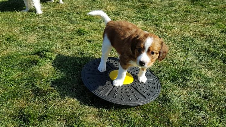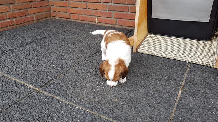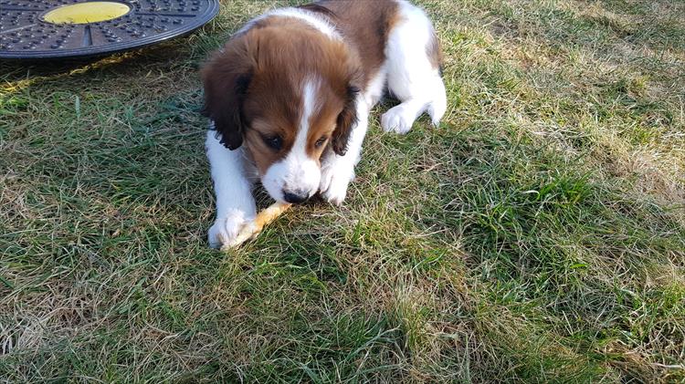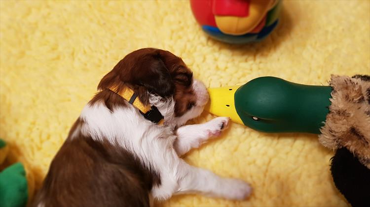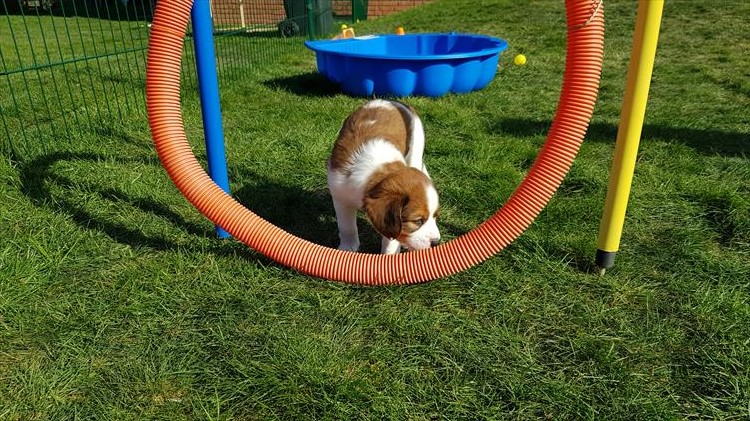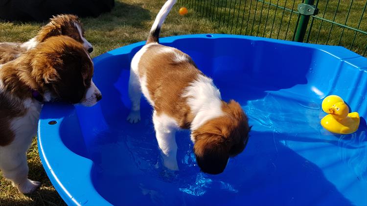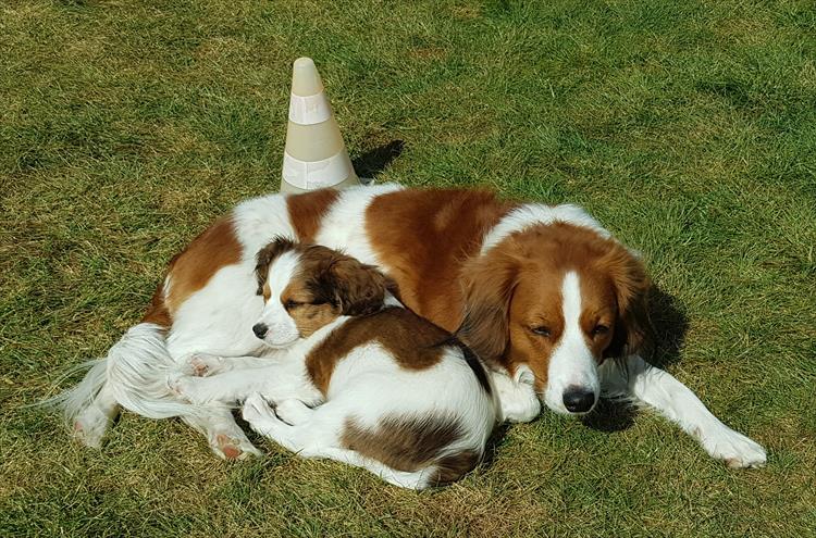 Unsere Zwerge sind jetzt in der Sozialisationsphase (4. bis 16. Lebenswoche). In dieser Phase werden die Welpen intensiv auf seine Geschwister und vor allem auf den Menschen geprägt (Prägungsphase). Sie lernen auf spielerische Weise den Umgang mit ihren Geschwistern. Sie springen, knurren, fordern zum Spiel auf, unterwerfen sich, quietschen und schreien. Sie entdecken, erkunden, untersuchen, laufen, rempeln und rangeln in den immer länger werdenden Wachphasen. Im Spiel lernen sie Stärken und Schwächen des Spielpartners kennen. Die Sinnesleistungen und der Bewegungsapparat funktionieren schon recht gut. Die Kleinen gehen zeitweise recht rabiat miteinander um. Wenn mal einer zu weit gegangen ist, folgen prompt lautstarkes Geschrei und Protest. Daraus lernen die Welpen wie weit sie gehen können, bevor es weh tut. Das führt zu ersten sozialen Lerneffekten und begründet die Entstehung und Ausbildung einer Beißhemmung. Beißhemmung muss gelernt werden und das geschieht sehr früh innerhalb der Geschwisterschar und im Umgang mit der Mutter. Welpen wissen, wie man zubeißt, aber nicht wie heftig und wann man wieder los lässt. Die Lernmethode ist relativ einfach: Bist du zu rabiat, dann geh ich weg von dir und du bist allein!