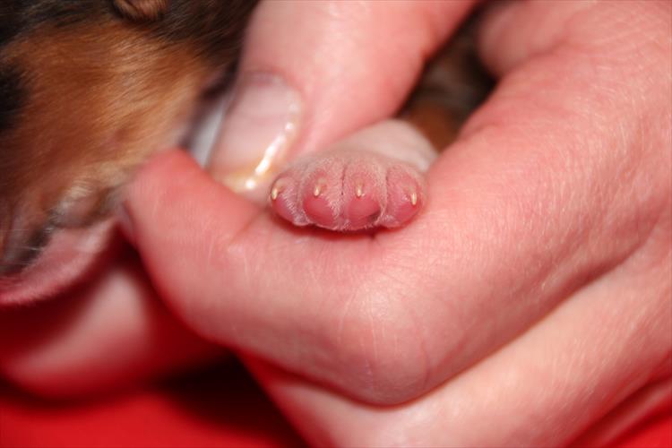 Die Krallen müssen gekürzt werden, weil die Welpen damit das Gesäuge verletzen können.