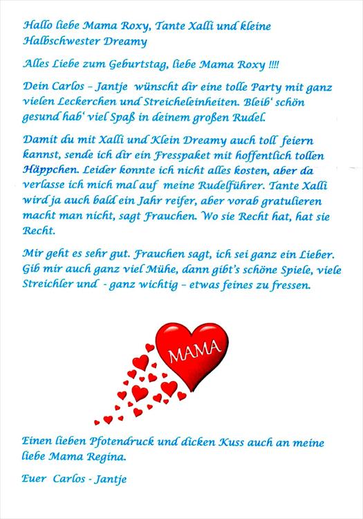 Glückwünsche von Xallis Bruder Dexter sowie Melanie und Markus Roll. Vielen, lieben Dank!