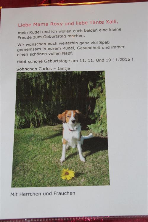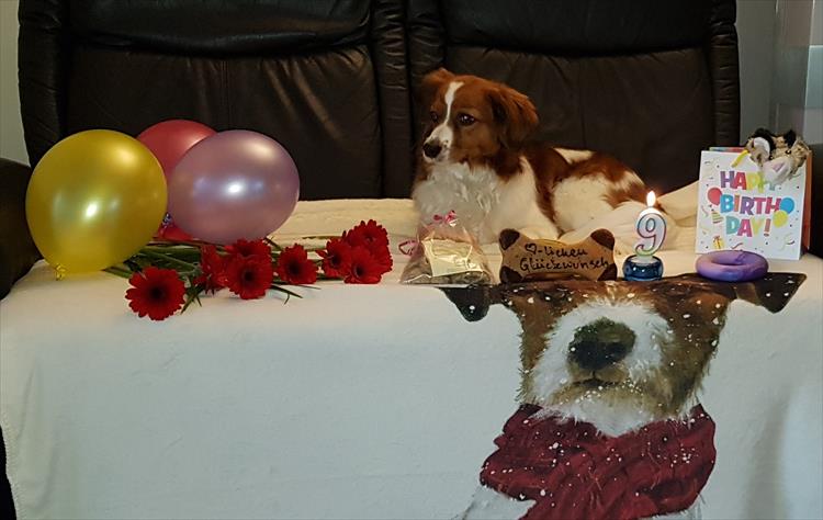11.11.2017 Roxy, unsere treue Seele, wird heute 9 Jahre alt. Sie bedankt sich für die schönen Geschenke.