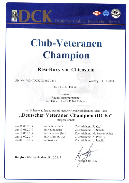 Roxy hat den Veteranen-Champion (DCK) erhalten.