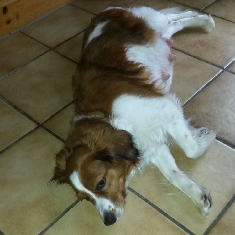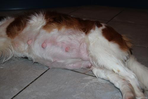 Roxys Zitzen schwellen weiter an und sie weicht Frauchen nicht von der Seite.