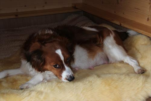 Es geht unserer Kookerkugel sehr gut. Sie leckt sich viel und bereitet sich auf die Geburt vor. Ab dem 57. Tag sind die Welpen lebensfähig.