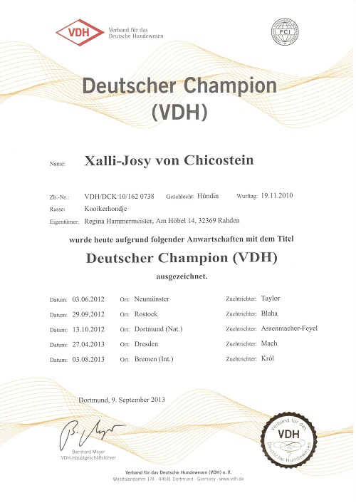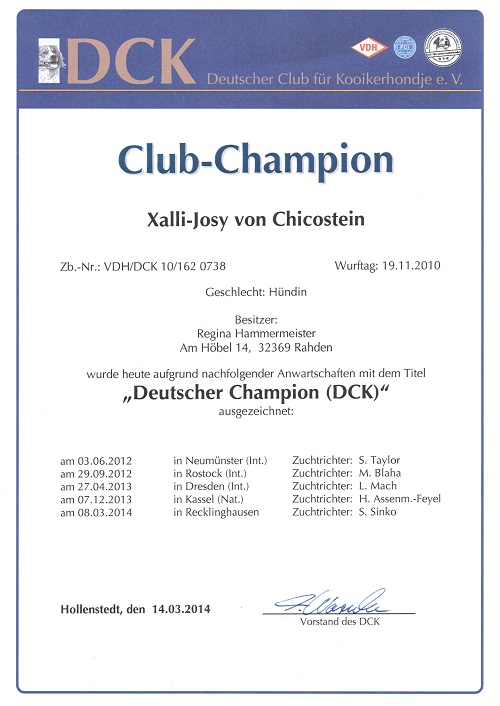 Jetzt ist es offiziell. Xalli hat ihren "Club-Champion DCK" erhalten.