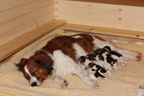 Mutter und Welpen (2 Jungs und 5 Mädels) sind wohlauf. Unsere Roxy hat alles prächtig gemeistert.