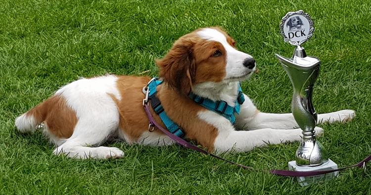 Eros-Eames aus dem E-Wurf in der Babyklasse: VV1 (Vielversprechend Platz 1). Der kleine Mann hat sich in seiner ersten Präsentation von seiner besten Seite gezeigt.