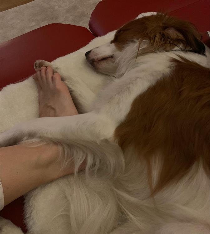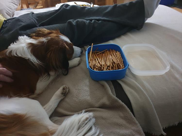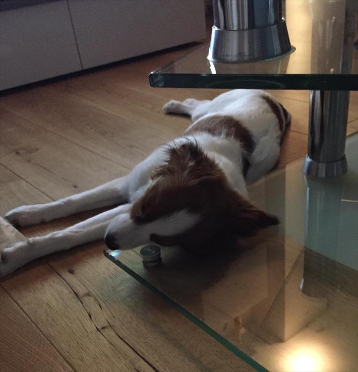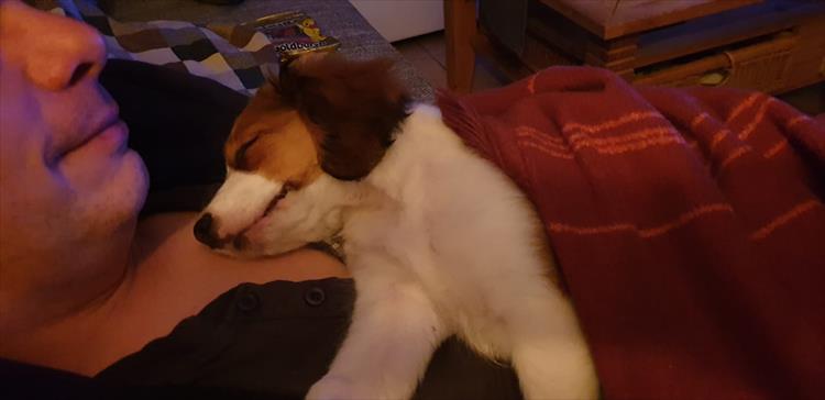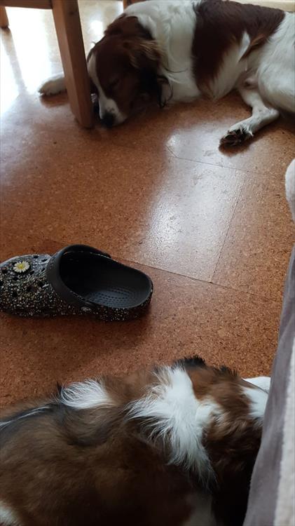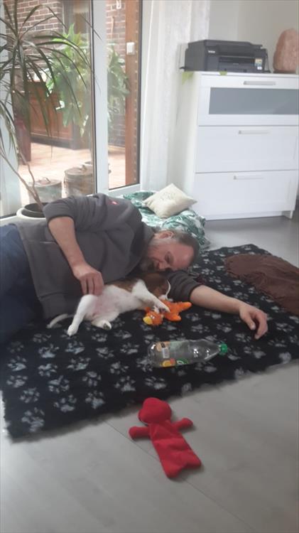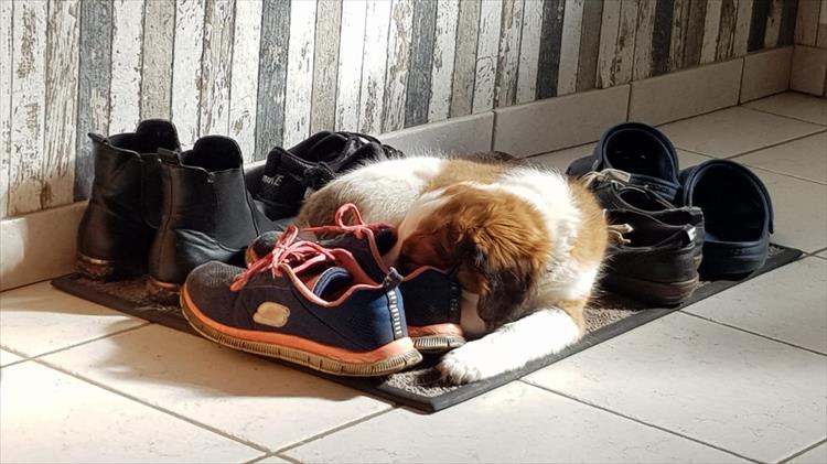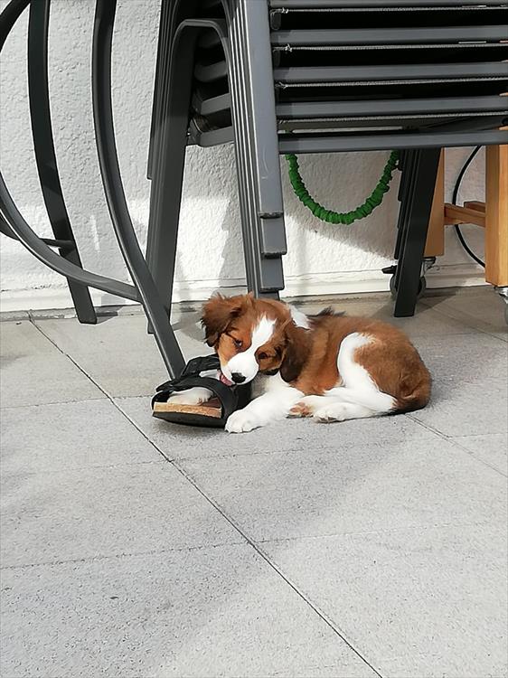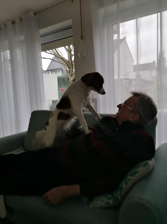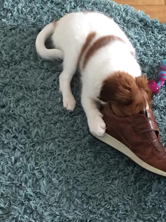 ... der Schuh riecht gut ... Schmusestunde mit Herrchen