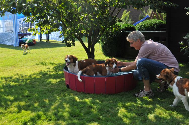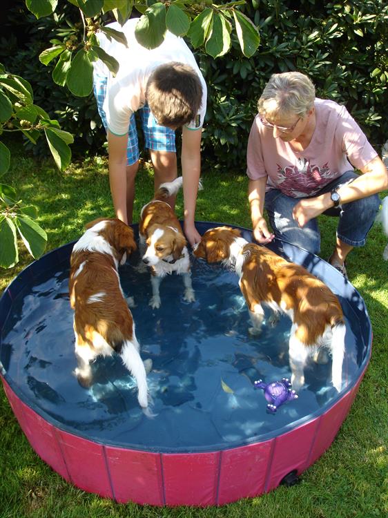 Zwischendurch gab es eine Abkühlung. Jantje und Copper im Pool