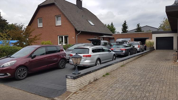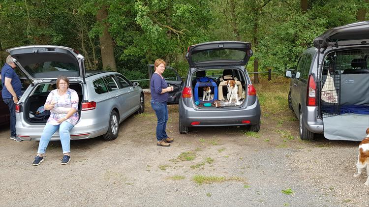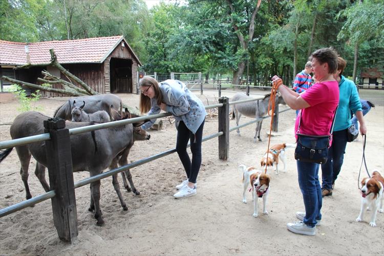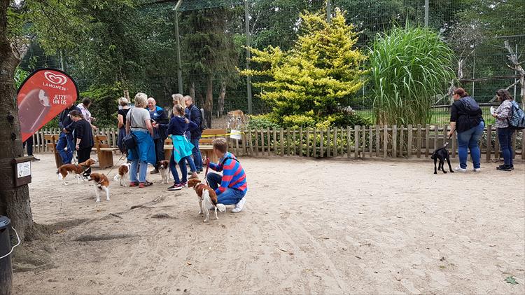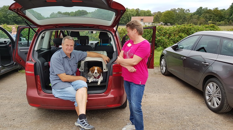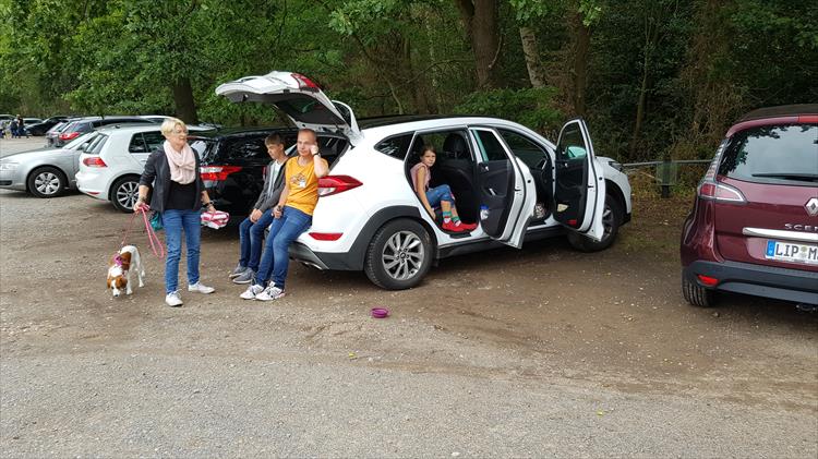 Mittagsmahlzeit für die Hunde auf dem Parkplatz des Tierparks vor der Rückfahrt nach Rahden
